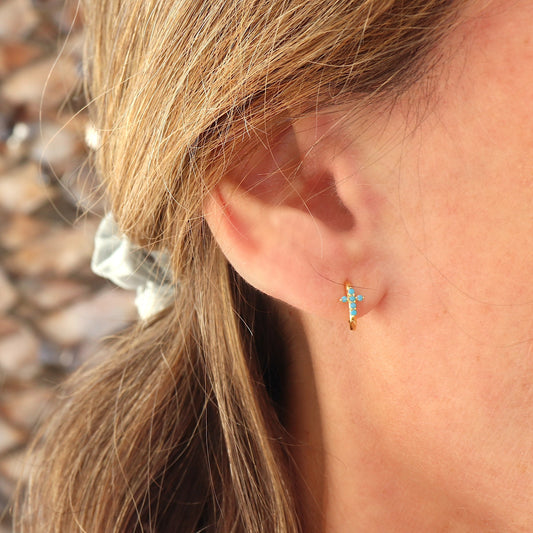 Puces d'oreilles femme chaine dorée avec zircons turquoises