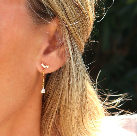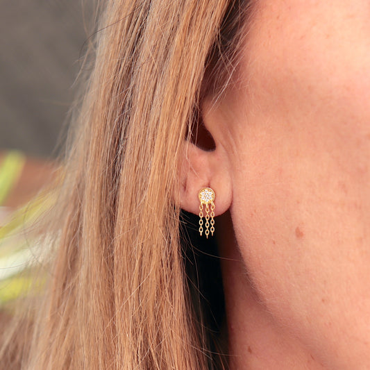 Puces oreilles chaine et zircons pour femme argent ou doré
