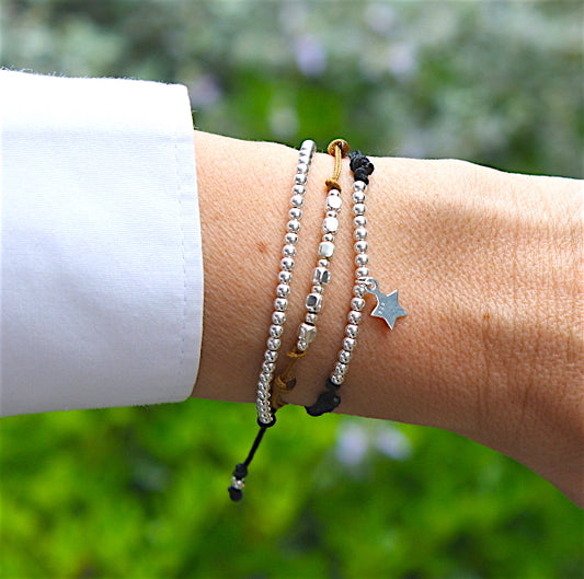 Craquez pour notre collection de bracelet cordon haut de gamme résistant à l'eau pour un bracelet à porter 24/24h. Le cordon est associé à des coeurs, étoiles,rond, perles, des éléments en argent 925 ou en plaqué or pour un bracelet simple ou multi rangs, des bracelets cordons personnalisable par le choix des couleurs