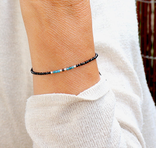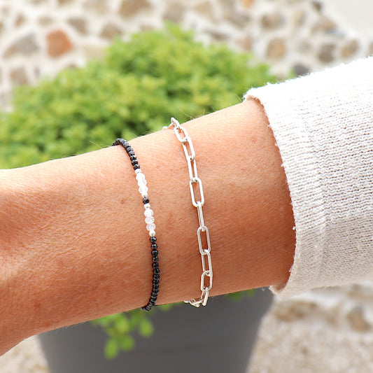Bracelet perles argent 925 et pierres de gemmes spinelles noires