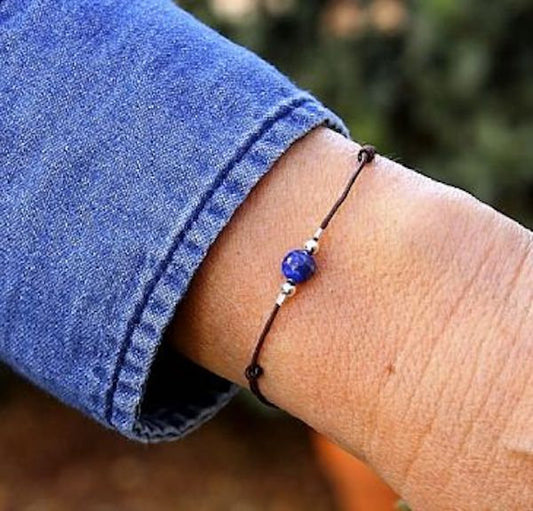 bracelet cordon femme pierre ronde lapis lazuli