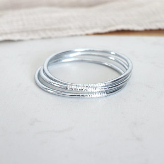 Bracelet jonc fin bouddhiste couleur argent, bracelet bohème 3 tailles