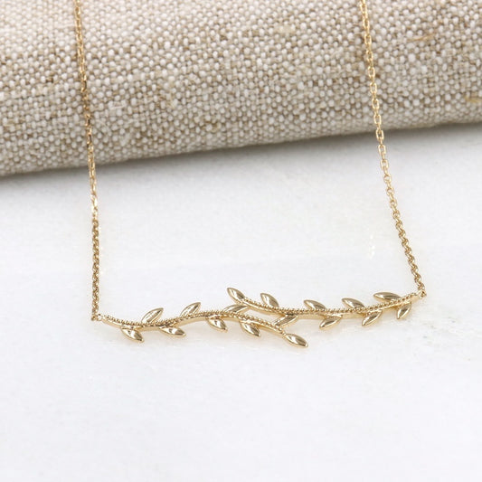 collier femme plaqué or feuille de laurier