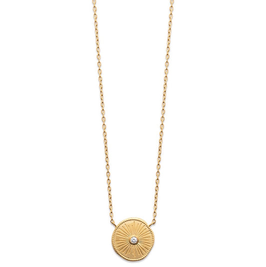 collier plaqué or pendentif soleil et pierre zircon pour femme