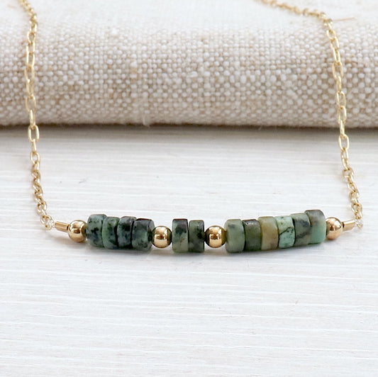 collier plaqué or gold filled et pierres turquoise africaine pour femme